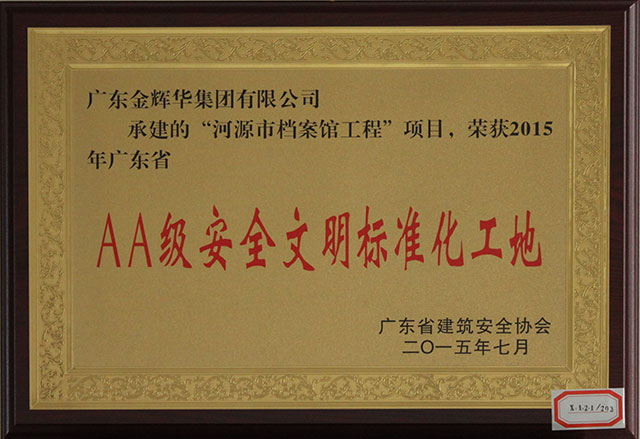 熱烈慶祝我公司榮獲AA級安全文明標準化工地
