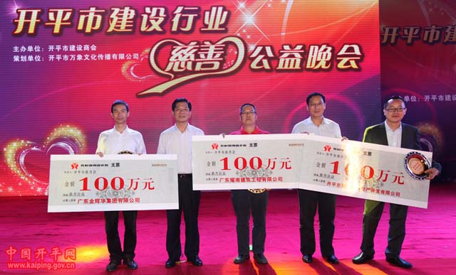 2013年3月22日,開平市建設(shè)商會主辦的“開平市建設(shè)行業(yè)慈善公益晚會”在人民公園隆重舉行。江門市住房城鄉(xiāng)建設(shè)局局長馬克烈,開平市黃耀雄、文彥、吳平超、張星杰等四套班子領(lǐng)導(dǎo),我集團(tuán)公司董事長張國球、總裁李甫等均出席晚會。在慈善公益晚會中,表...