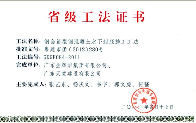 熱烈慶祝我公司工法“鋼套箱型鋼混凝土水下封底施工工法”等四個工法獲得省級工法。
