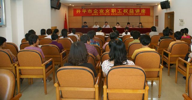 8月28日下午,市總工會聯(lián)合市婦聯(lián)在廣東 金輝華集團公司舉辦企業(yè)女職工權益講座。市總工會副主席譚文業(yè)、市婦聯(lián)主席林斌,廣東金輝華集團公司黨委 書記張解矛、工會主席陳維民都作了講話。講座由集團公司女職委高迎春主任主持,由市總工會女職委主任許素...