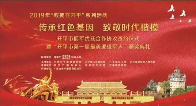 記我司贊助的開平市第一屆“最美退役軍人”評選活動頒獎儀式 2019年7月26日上午開平市第一屆“最美退役軍人”頒獎儀式在開平市東匯城隆重舉行,并展示了開平10位退役軍人的優(yōu)秀事跡:他們有的參與三大戰(zhàn)役解放中國、有的橫渡鴨綠江、鏖戰(zhàn)上甘嶺、...