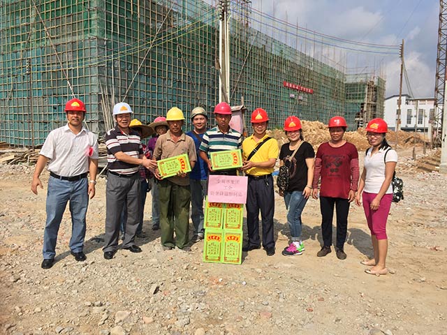 ——記廣東金輝華集團有限公司工會一線“送清涼”活動連日來,天氣進入夏季高溫季節(jié),氣候日益炎熱,為做好防暑降溫工作,保障生產(chǎn)一線工人的健康,推動改善工人生產(chǎn)生活條件,確保工人身體健康平安度夏,工會認真貫徹公司黨委的指示精神,迅速開展夏季“送清涼”活動。公司工會針對各施工現(xiàn)場生產(chǎn)環(huán)境實際情況,高度重視,積極籌措資金,制定“送清涼”活動方案,并認真組織實施。6月27日,由工會主席陳維民、工會副主席高迎春