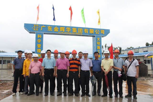 臺(tái)山市委常委林新潮、集團(tuán)領(lǐng)導(dǎo)在項(xiàng)目門牌前合照