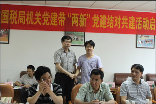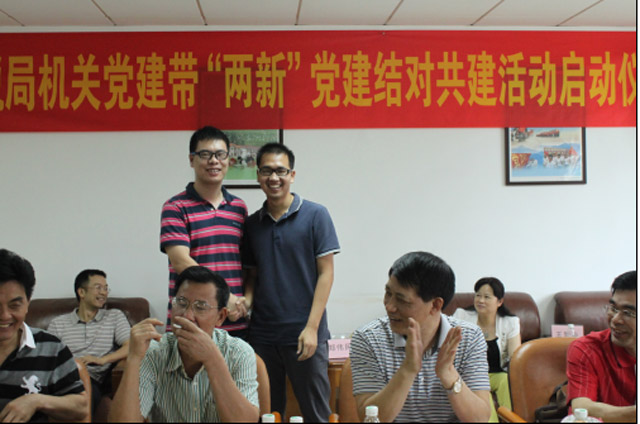 啟動儀式上,首先江門市國稅局的人員參觀了我集團的黨工青婦活動室、榮譽室。座談會上,雙方互相介紹了各自出席此次儀式的人員,后共建雙方的黨委分別對各自的黨委概況進行了介紹,使共建雙方更清楚地了解對方。儀式上,江門市國稅局機黨委向我集團黨委贈送了有關黨建工作的書籍,如十七大會議精神理解等。為切實實現(xiàn)共建目標,雙方根據(jù)各自黨支部的實際情況實現(xiàn)了江門市國稅局機關黨委各支部與我集團黨委各支部的共建結對,共同明確了通過結對共建活動目標:爭創(chuàng)全省乃至全國的‘兩新”組織黨建工作示范點。開平市委組織部劉威龍副部長在啟動儀式上,對“關于開展機關黨建帶‘兩新’黨建結對共建活動”的文件精神進行了解釋,并表示這是當前黨建的重要工作。長沙街道辦事處黨工委委員陳國強主任在啟動儀式上表示:將盡全力支持江門國稅局的“機關黨建帶‘兩新’黨建”的結對共建活動。