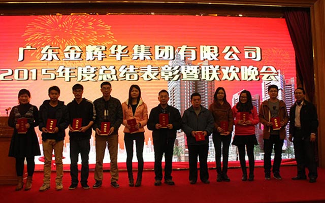2016年1月16日下午,廣東金輝華集團(tuán)有限公司2015年年度總結(jié)暨表彰大會在開平半島酒店召開,集團(tuán)管理層和員工們歡聚一堂,共同對2015年的工作進(jìn)行回顧總結(jié),展望2016年的工作規(guī)劃,同時(shí)提出了2016年要達(dá)成的各項(xiàng)戰(zhàn)略目標(biāo)。會議由集團(tuán)公司工會主席陳維民先生主持。