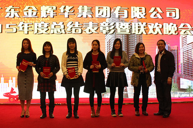 2015年是金輝華集團(tuán)極為重要的一年,作為廣東省首家擁有房屋建筑工程施工總承包特級資質(zhì),以及建筑行業(yè)(建筑工程、人防工程)甲級設(shè)計(jì)資質(zhì)的民營企業(yè),公司全力推進(jìn)各項(xiàng)重點(diǎn)工作,全體員工共同努力,在新的領(lǐng)域有所突破,各方面工作穩(wěn)中有進(jìn),在強(qiáng)化企業(yè)管理、加速工程建設(shè)、重視人才培養(yǎng)等方面做出了大量卓有成效的工作,并取得了可喜的成績??偛美罡ο壬髁?015年度工作報(bào)告并提出2016年的展望,集團(tuán)公司黨委書記張解矛先生就過去一年黨工青婦方面的工作進(jìn)行了總結(jié),董事長張國球先生作了重要講話。最后,對一批在過去一年中涌現(xiàn)出來的突出貢獻(xiàn)員工、優(yōu)秀員工、優(yōu)秀黨員、團(tuán)員、女職工、優(yōu)秀黨支部進(jìn)行了表彰和獎勵。