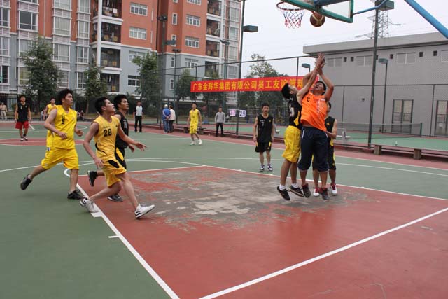 2013年1月26日早上,天富豪庭籃球場(chǎng)上吶喊助威加油聲此起彼伏,熱鬧非凡,廣東金輝華集團(tuán)有限公司員工友誼籃球賽正在進(jìn)行中。場(chǎng)上,比賽者積極,觀戰(zhàn)者投入,競(jìng)爭(zhēng)非常激烈,球賽熱烈精彩。
