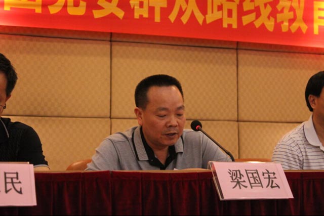 圖為紀(jì)委梁國(guó)宏書(shū)記作金輝華黨委開(kāi)展群眾路線教育實(shí)踐活動(dòng)取得的階段性成績(jī)匯報(bào)