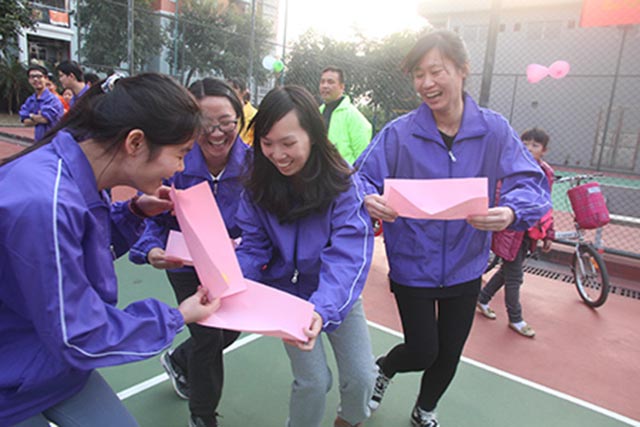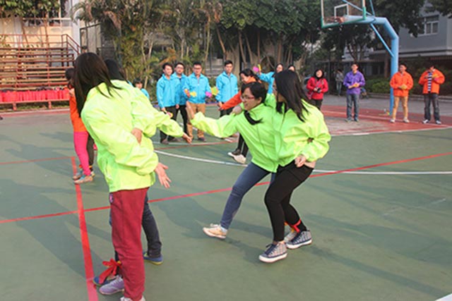 本次趣味運(yùn)動會采取大學(xué)生村官和金輝華集團(tuán)黨團(tuán)員代表混合組隊(duì)的形式,組成4隊(duì)開展比賽。比賽項(xiàng)目有齊心協(xié)力、二人三足接力、搶凳仔、義氣踢毽和全心傳意。