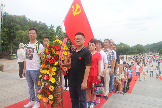 活動(dòng)中,全體黨員同志參觀了偉大領(lǐng)袖毛澤東同志故居,并聽(tīng)導(dǎo)游講解了毛澤東同志為大眾而舍小家,為革命犧牲了六位親人,為理想不屈不撓,困難和逆境不消沉不動(dòng)搖,經(jīng)受住各種風(fēng)險(xiǎn)和困難考驗(yàn);使大家感動(dòng)至極。到了毛澤東銅像廣場(chǎng),向毛澤東同志銅像敬獻(xiàn)了精心準(zhǔn)備的花籃,全體黨員列隊(duì)向毛澤東銅像三鞠躬,并圍繞銅像緩步而行,仰望偉人雄姿,感受一代偉人的驕人風(fēng)采和無(wú)往不前的巨大力量。