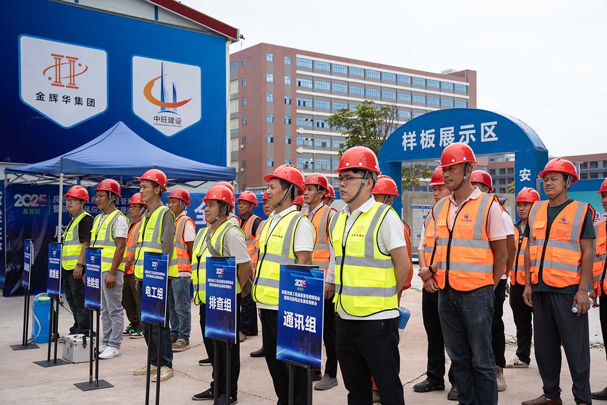 為做好住建領(lǐng)域防汛備汛工作,加強(qiáng)市住建系統(tǒng)在防汛救災(zāi)過程中的協(xié)同作戰(zhàn)能力,5月27日,河源市高新區(qū)房屋市政工程2025年上半年高質(zhì)量管理現(xiàn)場(chǎng)會(huì)暨防汛防風(fēng)應(yīng)急演練觀摩會(huì)在廣東金輝華集團(tuán)有限公司承建的模具城配套及模具交易中心市場(chǎng)項(xiàng)目舉行。高新區(qū)國(guó)土規(guī)劃建設(shè)局局長(zhǎng)李錦亮,高新區(qū)黨工委委員、副主任張志濤等部門有關(guān)領(lǐng)導(dǎo),高新區(qū)在建工地建設(shè)單位項(xiàng)目負(fù)責(zé)人、施工單位項(xiàng)目經(jīng)理、監(jiān)理單位總監(jiān)等100余人參加觀摩。